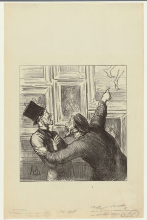 Daumier selbst machte in seinen Darstellungen wiederholt die Freude der Sammler am Entdecken, am Diskutieren und Beurteilen von Kunstwerken zum Thema. Er zeigt uns die Galeriebesucher und ihre Irritation angesichts der ausgestellten Werke, er schildert das Sprechen und abwägende Urteilen ebenso wie den Genuss eines Werkes und er kreiert den Typus des Kunstflaneurs, der in den Pariser Galerien auf Entdeckungsreise geht. Seine vielfach komischen Darstellungen reflektieren den Kunstbetrieb ebenso wie die Überforderung der Betrachter angesichts moderner Bilderfindungen. Sie stellen aber auch die persönliche Auseinandersetzung mit künstlerischen Werken in den Mittelpunkt, die den Sammler auszeichnet, der selbst urteilen und wählen muss.