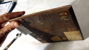 Sorgfalt zählt: Die rückseitige Kante eines Tafelbildes wird abgetragen. Foto: Städel Museum