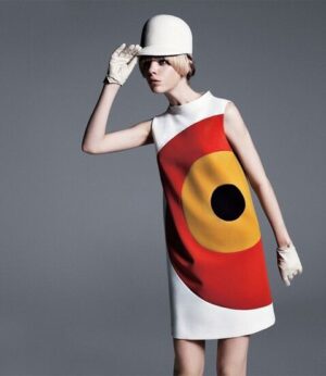 Hatten sich die flirrenden Formen erst einmal durchgesetzt, wurden sie von Designern, Fotografen, Magazinen und Musikern verwendet und weiterentwickelt. Der Zeitpunkt konnte kaum passender sein, denn in den 60er-Jahren kam es zur Mode-Revolution: Musik, Film, Design und soziale Veränderungen griffen ineinander und erfanden erstmals eine Mode nur für die Jugend. Allen voran den Mod-Look, dessen Wurzeln in London liegen. Die Kleidung der Mods war geradlinig und mod-ern, das sogenannte Target-Motiv ihr Logo. Parkas, schmale maßgeschneiderte Anzüge und kurze A-Form-Kleider gehörten zu ihrem festen Repertoire. Und die monochromen, geometrischen Prints der Op-Art komplettierten den Look.