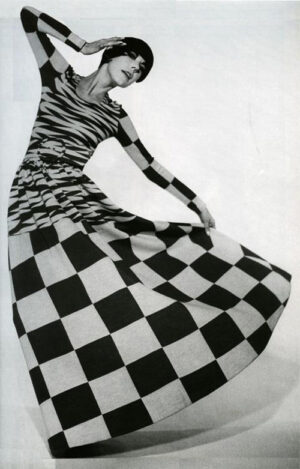 Davon ließ sich auch der französische Modeschöpfer Pierre Cardin inspirieren und designte 1966 das Target Dress – die textilgewordene Ikone einer ganzen Dekade. Das Kleid wurde in allen führenden Magazinen gefeatured. Auch in anderen seiner Designs der darauffolgenden Jahre fand sich der Einfluss der Op-Art wieder und ging dabei immer häufiger mit futuristischen Einflüssen einher, etwa in Cardins Cosmos-Ensemble von 1967 oder seiner 1969-Kollektion, in der breite Streifen das bestimmende Element sind. Als der Mod-Style auf der anderen Seite des Atlantiks ankam, befand sich New York unter dem Einfluss der Op-Art-Ausstellung The Responsive Eye (1965).