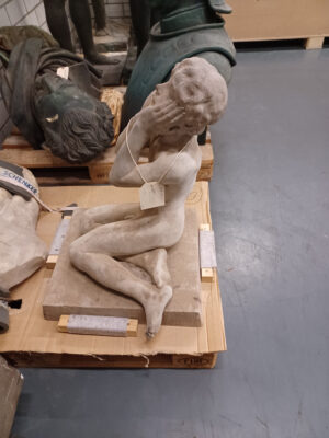 Einen kleinen Vorgeschmack darauf geben die Aufnahmen des „Sonnenanbeters“, die nach der abgeschlossenen Restaurierung entstanden sind. Nach der Restaurierung zeigt sich, dass es sich um eine bildhauerische Arbeit von besonderer Qualität handelt, die auch anatomisch absolut überzeugend und fein ausgeführt ist. Die Künstlerin wählte für ihre Figur eine sehr komplexe Körperhaltung, die sich folgerichtig in der Krümmung der Wirbelsäule und einer kohärenten Anspannung der Rückenmuskulatur widerspiegelt. Unter den damaligen Umständen ist das durchaus bemerkenswert: Um 1900 waren das Akt- und Anatomiestudium in der Ausbildung von Künstlerinnen noch immer heikel. Aus vorgeblich moralischen Gründen versuchte man Frauen davon auszuschließen. Dieses Argument wurde in Deutschland bis 1919 auch strapaziert, wenn es darum ging, den Ausschluss von Künstlerinnen aus den staatlichen Akademien zu begründen. In der Bildhauerei war ein fundiertes anatomisches Verständnis umso wichtiger, da der menschliche Körper hier allansichtig und oft lebensgroß nachgebildet werden musste. Louise Schmidt signierte ihre Schöpfung, bei deren Ausführung sie dieses Können unter Beweis stellte, auffällig und gut sichtbar.